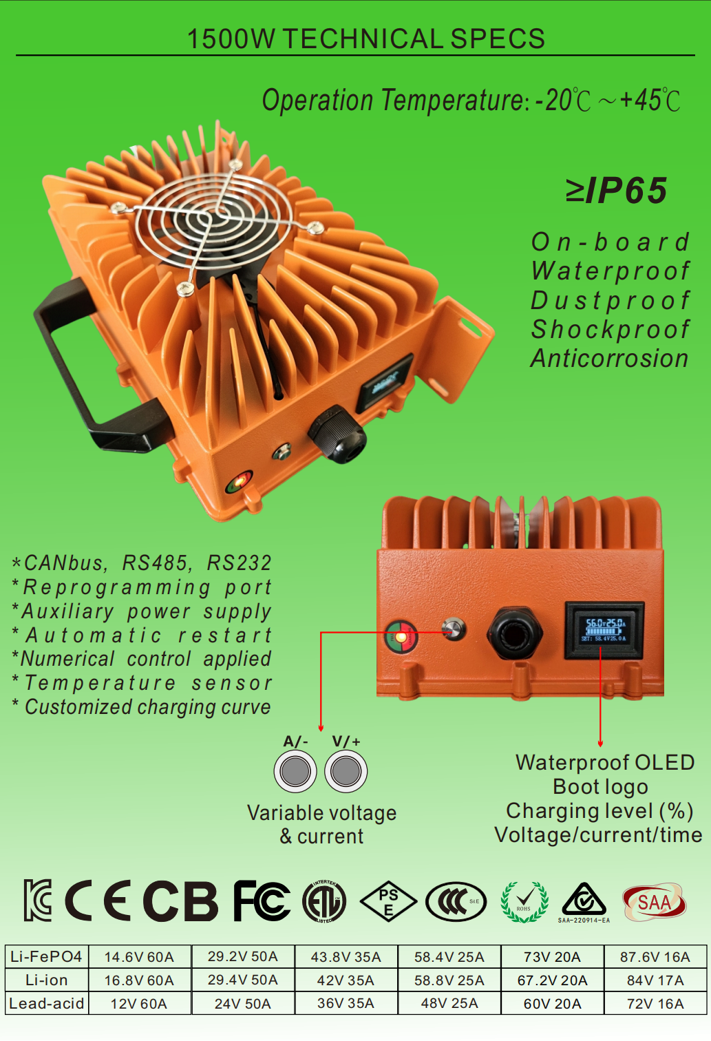 1500W Waterproof On-board [Variable charger with built-in MCU and OLED]